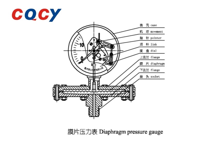 Часть оболочки использует запечатанную безопасную переднюю структуру уплотнения, а измерительная часть использует круглую пленку в качестве эластичного чувствительного элемента, заполненную маслами с низкой вязкостью,чтобы измерительный механизм был способен противостоять вибрациям рабочей среды или пульсации среднего давления. Сепаратор диафрагмы может быть разделен на тип фланца, натянутый тип, тип клипа, тип гайки в соответствии с режимом его соединения.